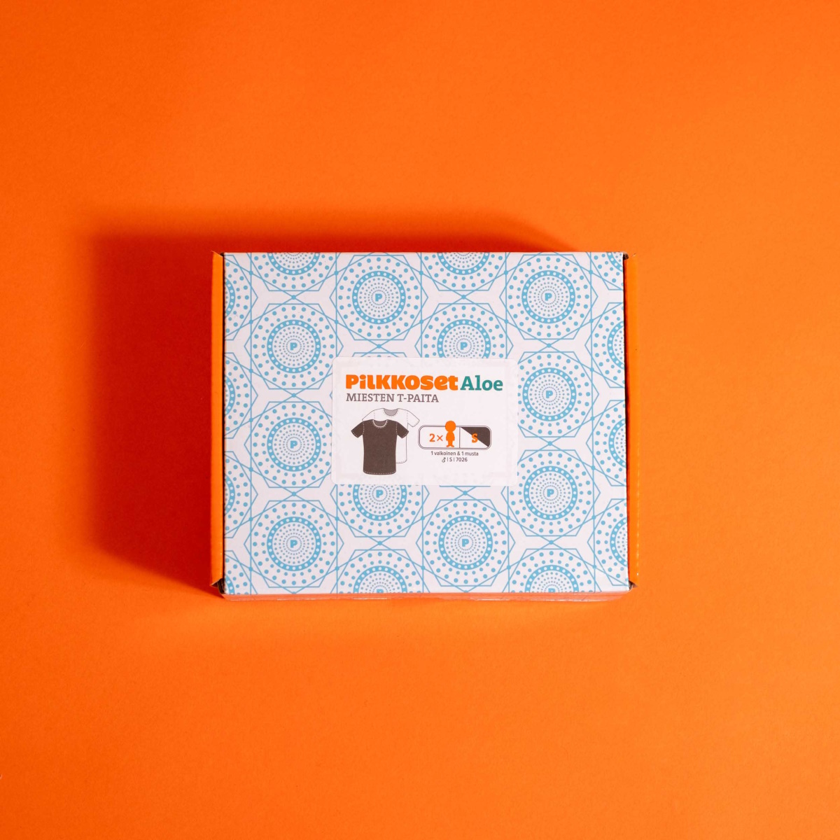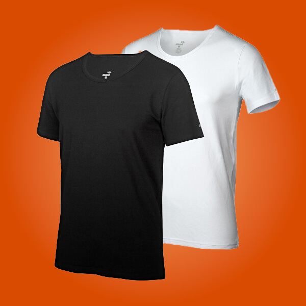 Pakkauksessa 1 musta ja 1 valkoinen paita