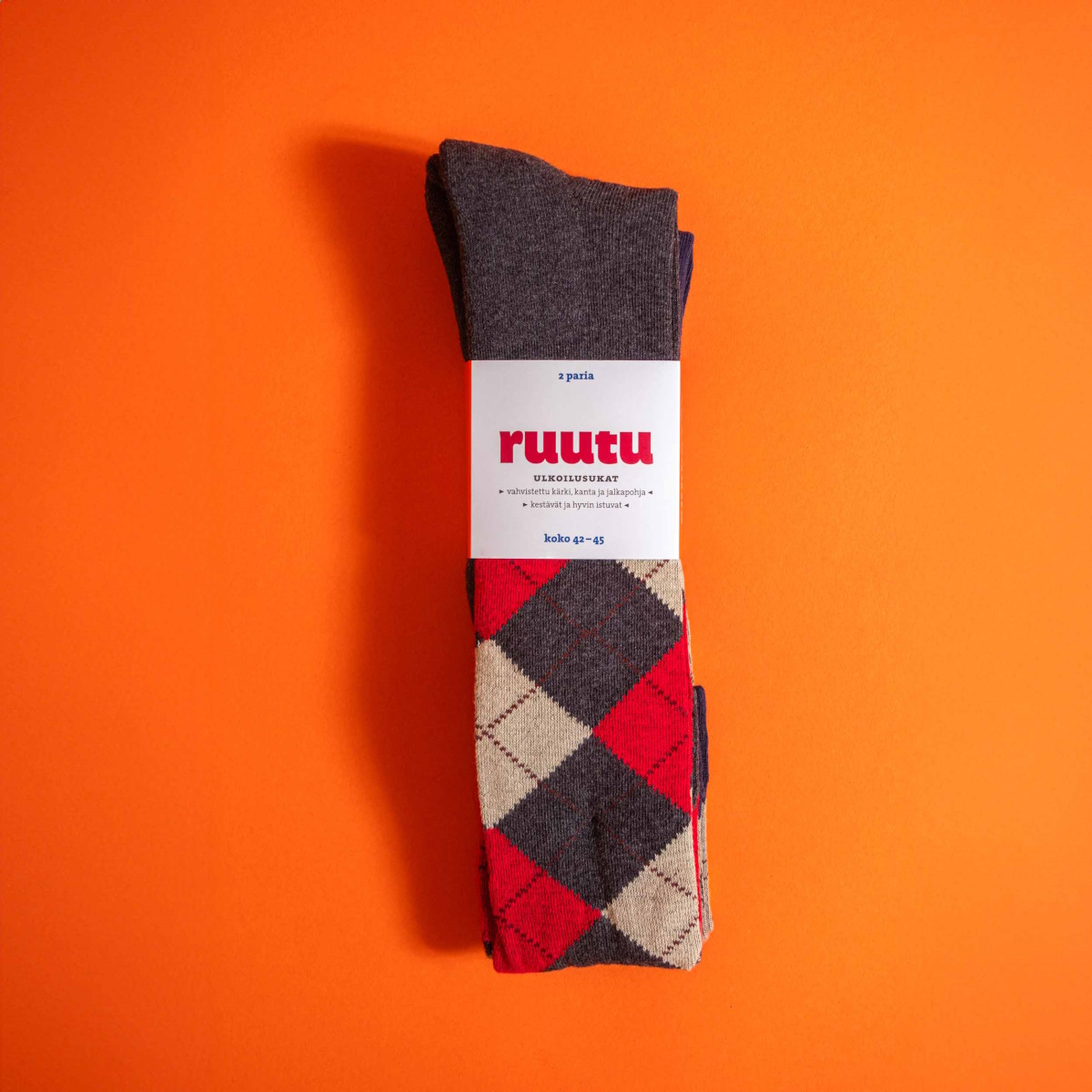 Ruutusukat ovat pitkävartiset puuvillaiset sukat, jotka sopivat erinomaisesti ulkoiluun. Pehmeästä ja joustavasta materiaalista valmistettu Ruutusukka tuntuu miellyttävältä jalassa. Pakkaus sisältää yhden parin molempia värejä!